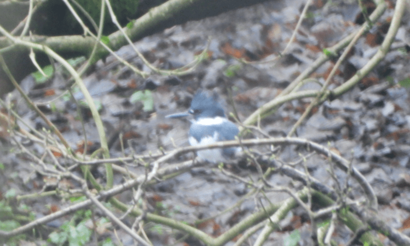 Ok, that’s beyond a cliche for a Belted Kingfisher. The relevant variation here is when you hear one you’ll know. For those old enough to remember not unlike a football rattle.