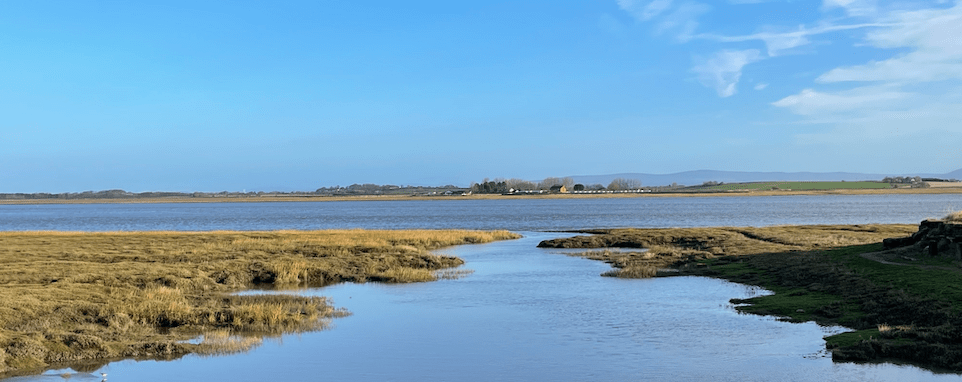 I had a day off today and among other walking and birding activity on a crisp and sunny January day watched the tide come in at the exotically named Burglar’s Alley, on the Wyre estuary south of Fleetwood. My plan was to look for Rock Pipits and Snipe displaced by the high tide and search through the Teal and Wigeon flocks. When a Grey Heron swooped through the panorama above and landed on the flooding saltmarsh I had an inkling what was going to happen, and I was proved to be right.