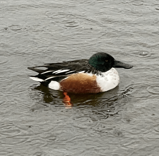 Without wishing to be anthropomorphic the regular drake Shoveler didn’t appear particularly enamoured with the conditions whatever the idiom the blogpost title reflects says.
