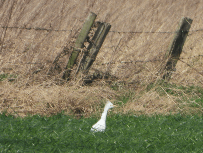 As I approached the general area I saw a small group of birders perusing a field. It looked a bit urban for geese but I assumed it was the right place and parked up round the bend. When I got back to the field there was only Paul Thomason there, who kindly put me on the ten Cattle Egret feeding with a number of Little Egret. This was the greatest number I had ever seen together in Britain, and an unexpected bonus.