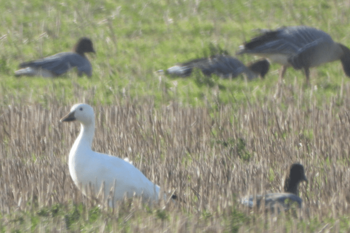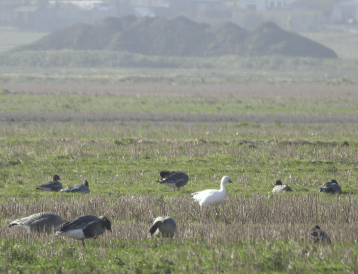 Snow Geese with Pinkfeet are something of a quandary. The escape risk cannot be discounted, but presumably some wild individuals get caught up with the obvious carrier species for a goose with a western origin. It felt a bit surreal to see Cattle Egrets and a Snow Goose on the same road barely a mile apart. I was reminded of an evening many years ago at Pilling Lane Ends where the twitchers assembled to watch the then very rare pair of Glossy Ibis coming in to roost saw them appear at virtually the same time as a Snow Goose with Pinkfeet. Unlikely combinations in both cases.