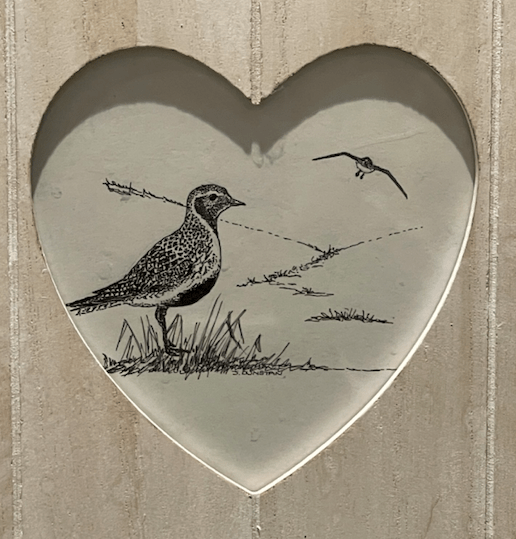These days several of her seaglass based creations adorn several rooms in the house. But we do have some of her old bird vignettes in the bathroom, as used in the Lancashire Breeding Bird Atlas.