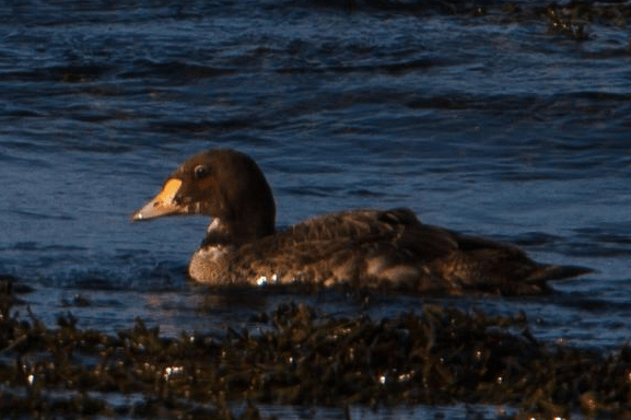 For some reason I can’t recall Stu had booked flights from Tingwall rather than the ferry, and sods law fog meant that planes were grounded. Some other birders who had brought a van over on the ferry took us under their wing and we went to Wester Quarff for a first winer drake King Eider that was lingering in the flock around the salmon cages. A good start.