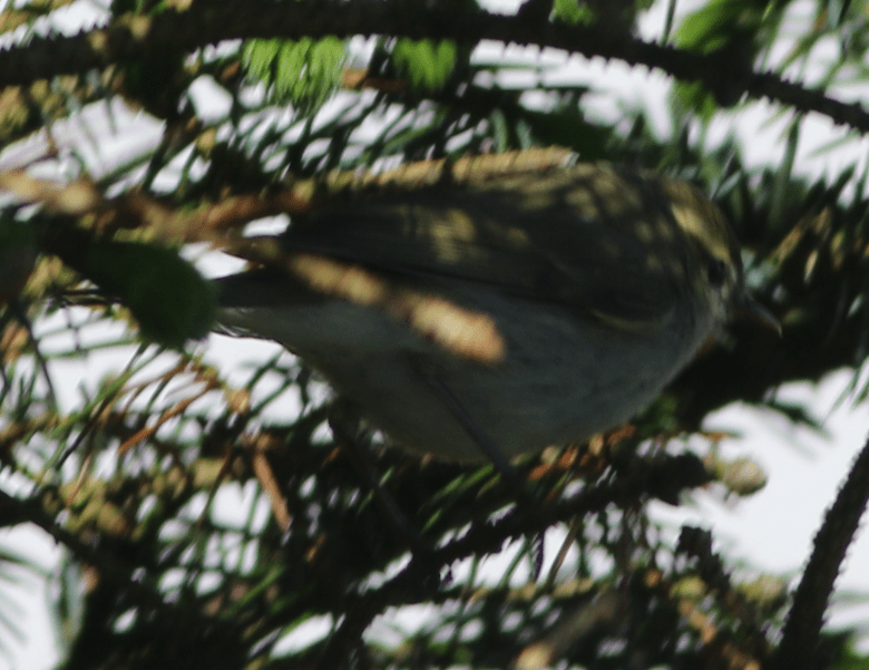 When I did eventually arrive on Skerries on the Sunday morning it had been covered on the Friday by Shetland birders so I didn’t have great expectations in not particularly suitable winds. It was a big surprise to see and helpfully hear an elusive Greenish Warbler in the garden of Nampara. I’ve had a good record with this species on Skerries finding no fewer than four over the years.
