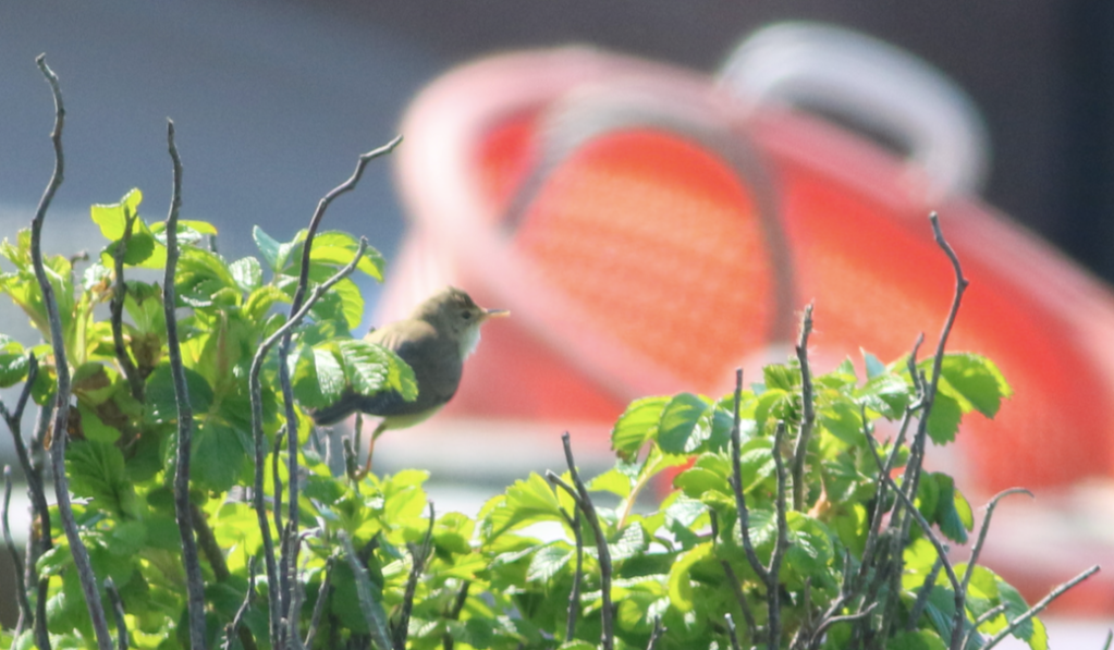 Birds continued to come in on helpful winds. A couple of Marsh Warblers were seen, including this one which removed any difficult ID quandaries by singing from a bush in the Nampara garden.
