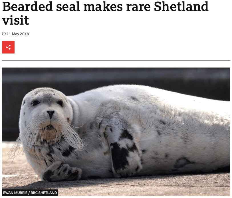 Observant readers will already have noticed this one isn’t just about birds. It’s also not just about Skerries either. Before heading out to the isles I took part in the Relay for Cancer Research, a twelve hour overnight charity walk. There had been a Bearded Seal right in the centre of Lerwick, and I eventually connected with this rare Arctic wanderer.