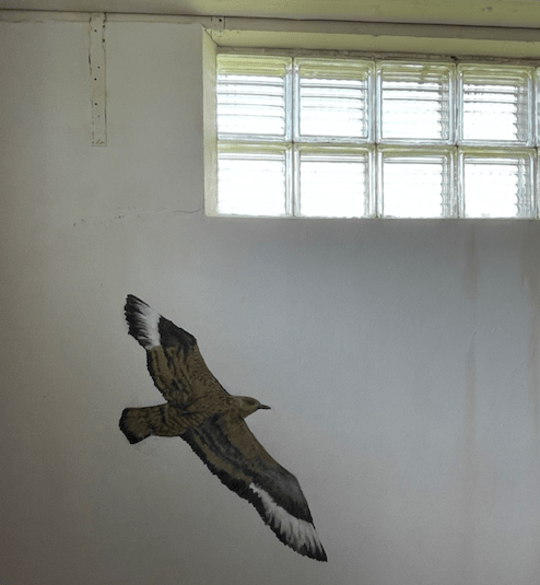When you get off a place on the Foula airstrip there’s a defunct ‘Bonxie stick’ holder. ‘WATCH OUT FOR BONXIES’ it says. ‘You NEED our Bonxies sticks!’ It was a fundraiser for the school, they got cash for school trips and you got something to wave in the air above your head to keep the Bonxies at bay. It reflects a grudging tolerance of the islanders’ curmudgeonly summer neighbours as an unusual tourism feature.