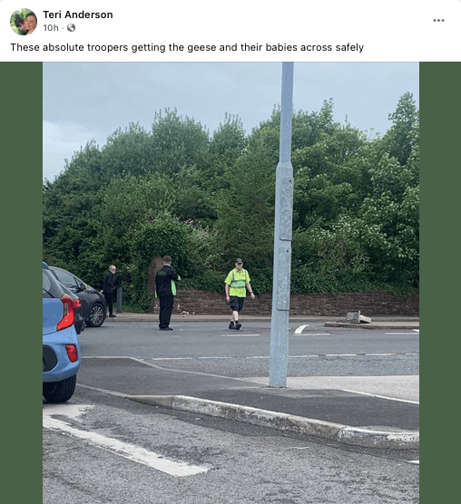 It’s not just posters, people are actively helping the birds to cross roads. This picture today from the ‘Beauty of Barrow-in-Furness’ Facebook group of Asda employees doing their bit has so far attracted nearly 500 likes. A comment attached saying ‘great to see kindness instead of cruelty stories’ summed it up nicely.
