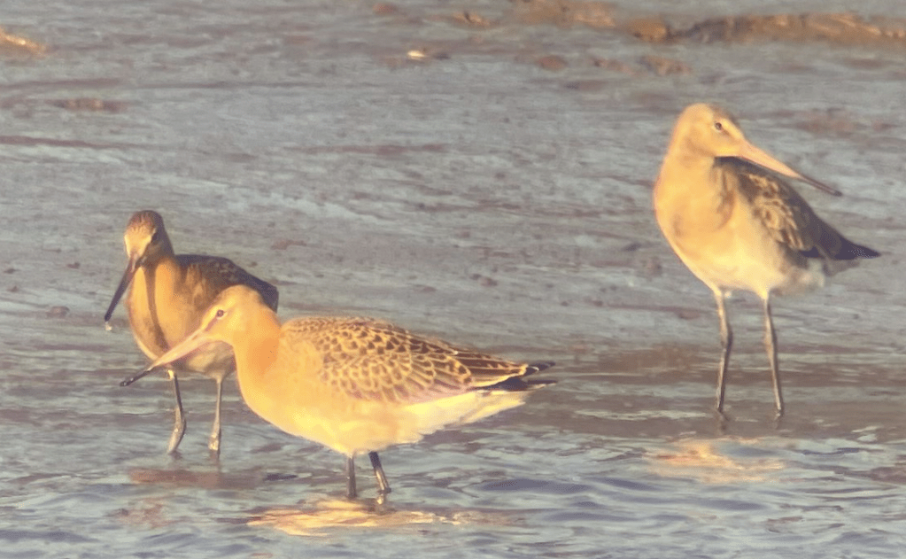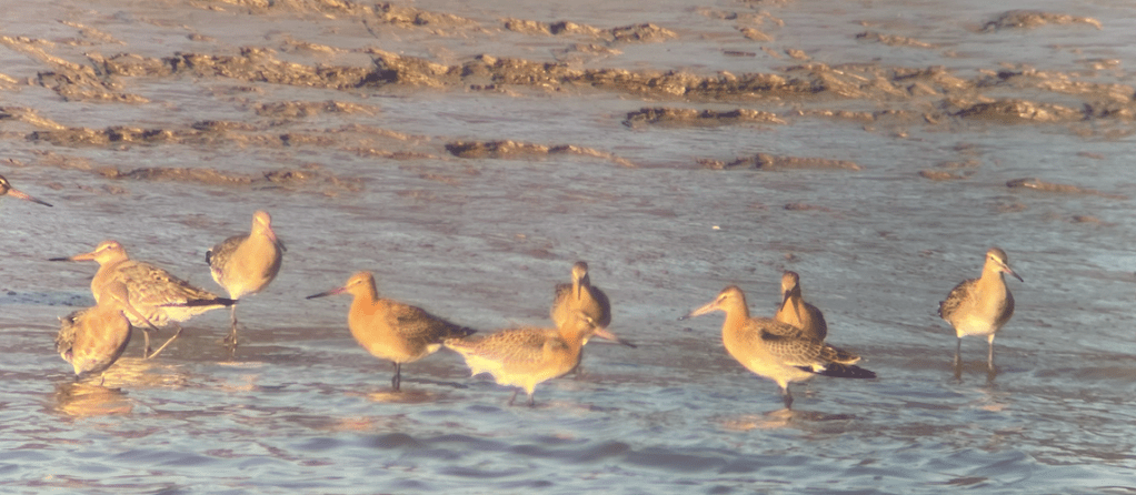 A group of 24 Black-tailed Godwits dropped in, the spangled juveniles looking particularly resplendent in the early evening sun. They didn’t hang around long before leaving to the south.