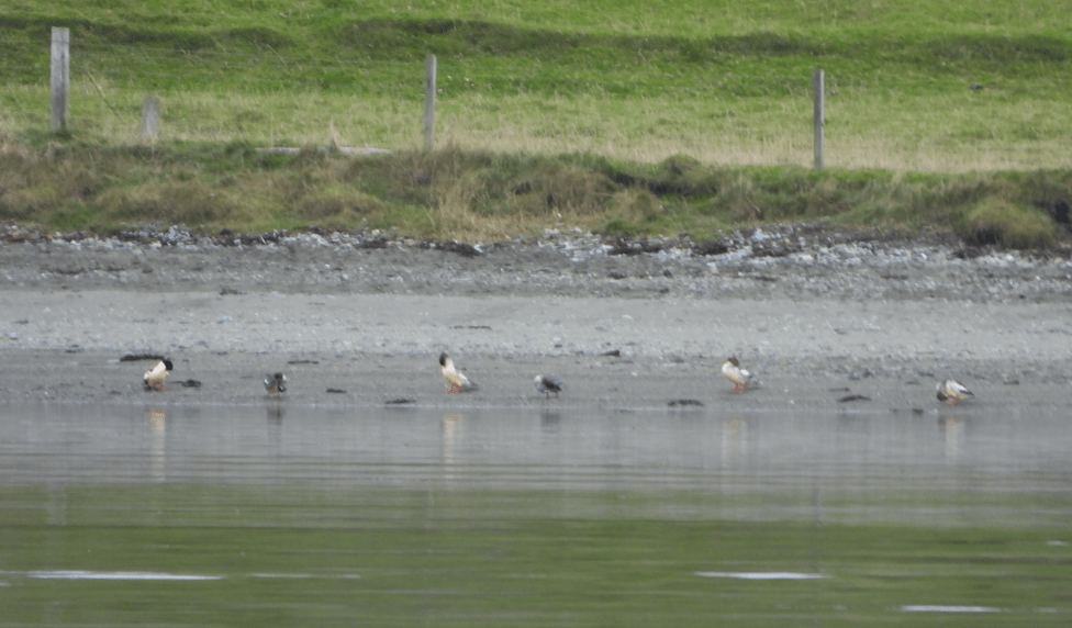 I viewed from the College where the King Eider had been seen recently without success. There were some birds of interest, including a few Red-throated Divers, Black Guillemots and a half a dozen Goosander on the opposite island of Trondra.