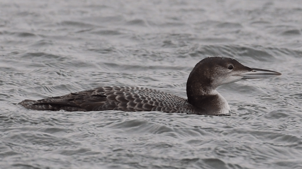 On Friday Jane and I went back to the rezza to do the monthly WeBS count. The weather was dire when we checked out of the hotel, but it lifted as we drove the short distance to Ormsgill. We hadn’t got very far on our counting lap when I was rather gobsmacked to see a Great Northern Diver drift away from us into the centre of the expanse. I’ve never seen one here so it was a great thrill to get one on a WeBS count. I got the scope and managed some record shots, and pointed it out to a couple who had come to see the Goldeneye. It was the first they had seen for many years.