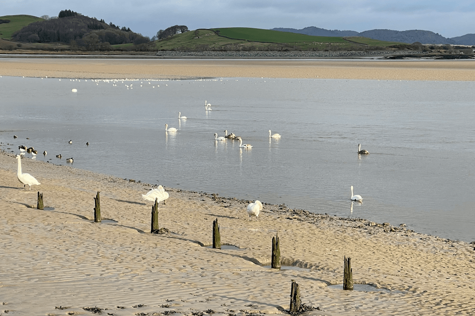 In the ‘Beauty of Barrow-in-Furness Facebook group Jayne Williamson took a picture of some of the Mute Swans on the Leven Estuary at Canal Foot. I’ve zoomed in below: