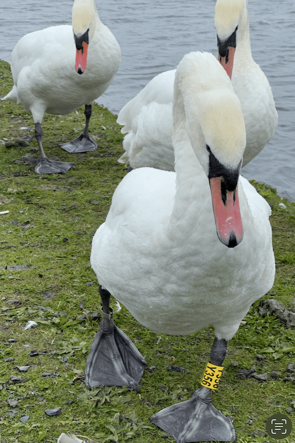 Yellow Darvic rings aren’t used locally. Blue is the only colour deployed in Cumbria and Lancashire. So the bird Jayne photographed was from further afield. It seemed likely it would be a Yorkshire ringed bird given prior experience of female Y356, which has spent a couple of years on Ormsgill Reservoir having been caught as a cygnet in Hillsborough Park, Sheffield in 2019.