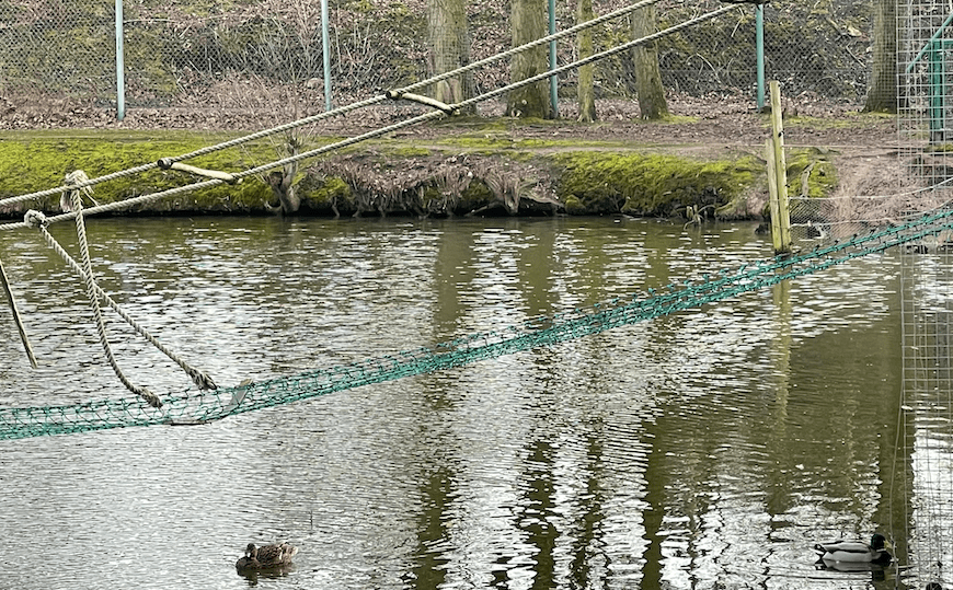 I also checked for other wild waterbirds in the parts of the zoo with some water. There were 16 Mallard across three enclosures, and nine Moorhen over five sites even including the elephant enclosure. A heron fed in the flamingo and pelican lake shallows, and a Greylag Goose was on there.