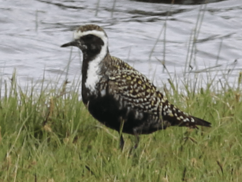I walked from my digs to the extreme east of the island at Skaw. There is a golf course here, and by the pool was an extremely smart looking Golden Plover. I genuinely thought to myself ‘that bird is so striking it could be an American Golden Plover’, taking a couple of pictures to look at later as northern Golden Plover are often more colourful.