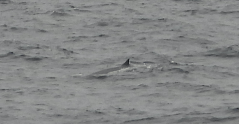 The weather conveniently closed in during the time Jane and I had earmarked for table tennis and air hockey. When I had a second watch later on it was clearly considerably calmer. Gannets and Cory’s were moving in greater numbers but still a trickle, then the anticipated moment as a small whale blow appeared close to the boat. I had a brief view of a second animal which suggested as the blow had that it was a Minke, I pointed the camera and hoped for the best and got lucky.