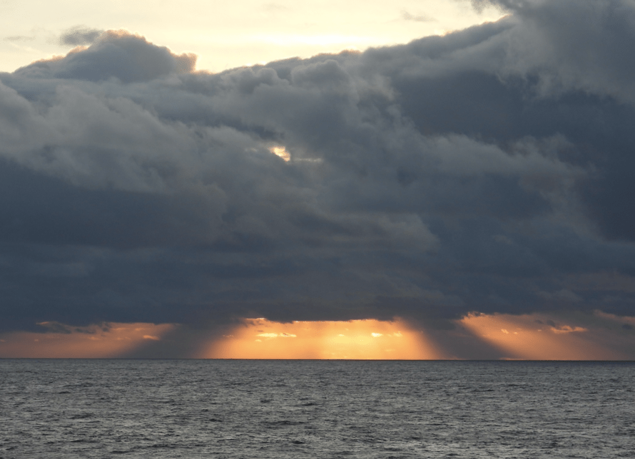 We did have a couple of encounters with whales. The first ones had a large straight blow, and I’m guessing they were Fin Whales. The second group had a distinctive angled blow so were presumably Sperm Whales. We also saw more flying fish than yesterday, in groups of up to 20 or so.
