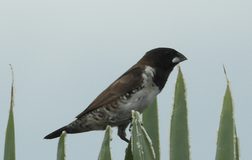 At the hotel our room wasn’t due to be ready for seven hours. As we had been travelling for hours Jane told me to go birding in the grounds whilst she negotiated early access to the room. This soon gave good views of some young Bronze Mannikins, though the picture below was a male a few days later.