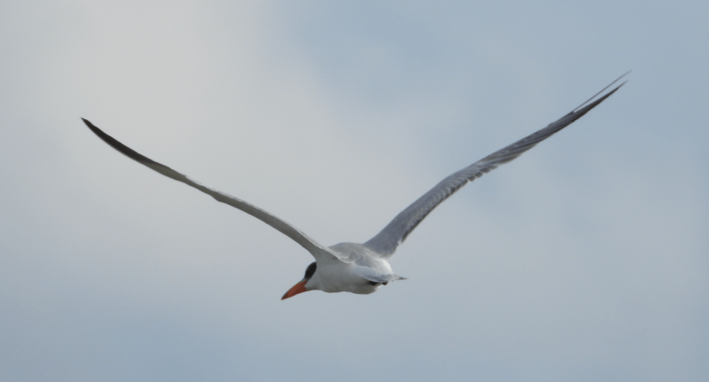 A couple of Caspian Terns were also around yesterday and today. Yesterday they were loafing distantly among the large gulls. Today presumably with more favourable tide conditions they were fishing. Caspian Tern is the biggest tern species in the world. Like flamingos their fairly widespread range doesn’t make it any less special when you do see them