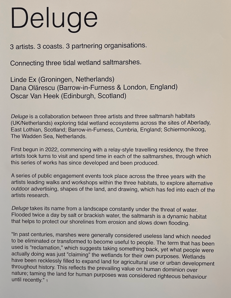 Deluge involves the work of three artists. Rather than badly convey what it’s about I’ve attached the summary in the exhibition of its artists and scope.