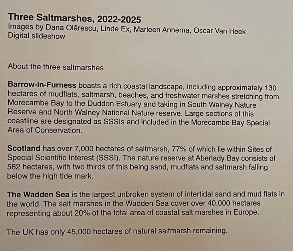 I was particularly taken by ‘The Wastelands’ which is a series of large scale ethereal panoramas of saltmarshes using rising bubbles to symbolise the threat of rising sea levels.