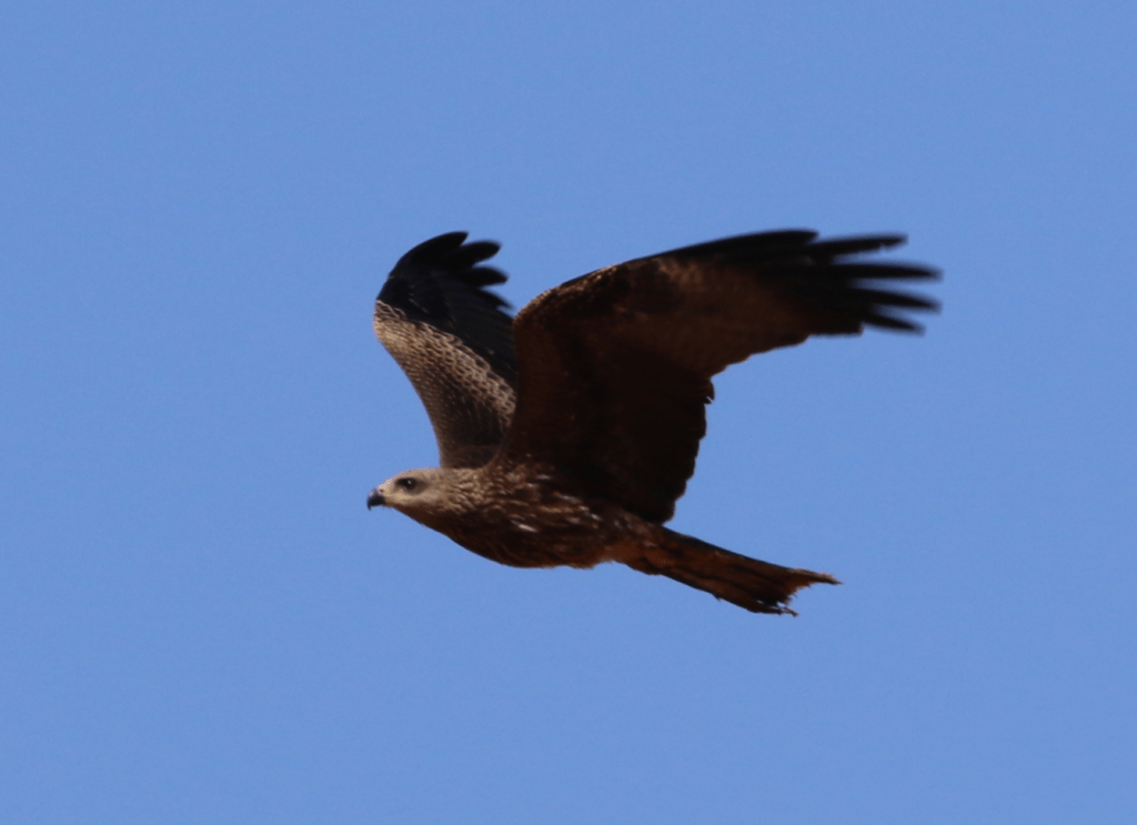 Over several visits there was quite a bit of interest here. Up to five Black Kites were around. There were also several Glossy Ibis, good numbers of egrets and Spoonbills and a female Teal on earlier visits replaced by a Moorhen on latter ones. There were also plenty of small waders including Wood Sandpipers, Ruff, Turnstone and Greenshanks.