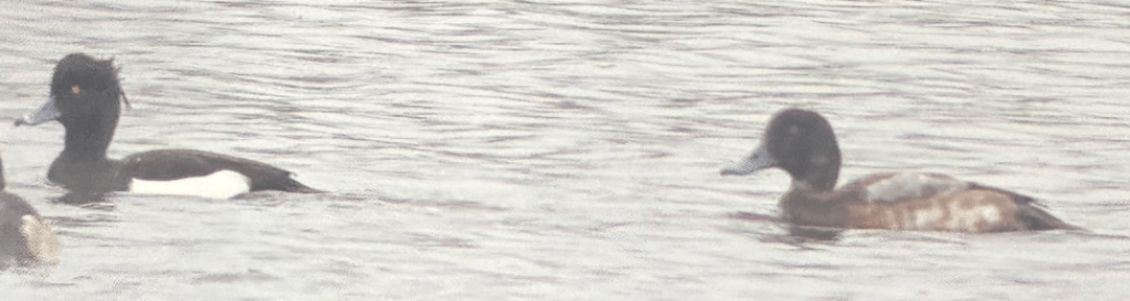 Fast forward to Sunday and it was pretty grim weather in Blackpool, but I had a couple of hours to spare whilst Jane was hospital visiting so I went to do the Stanley Park monthly wildfowl count. I had counted a group of Tufted Ducks when I registered that one had grey coming through on the upperparts. So actually a Greater Scaup then.