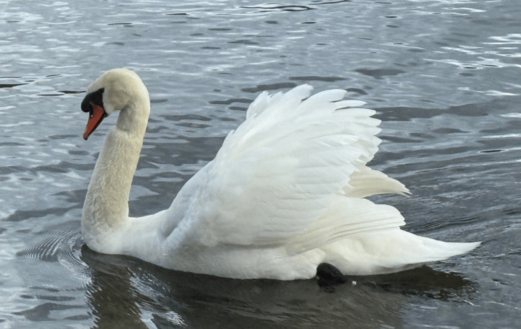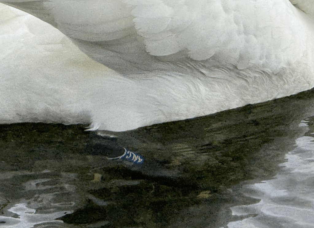 There were a pair of swans in the vicinity. The cob is picture at the top of the blog. I read his ring and it was 4ALC. Steve Christmas was as helpful as ever when I contacted him, and quickly informed it had been ringed on site at Waterhead on 24 October 2013. Given he was an adult when caught he must be at least 14 years old, a reasonable age.