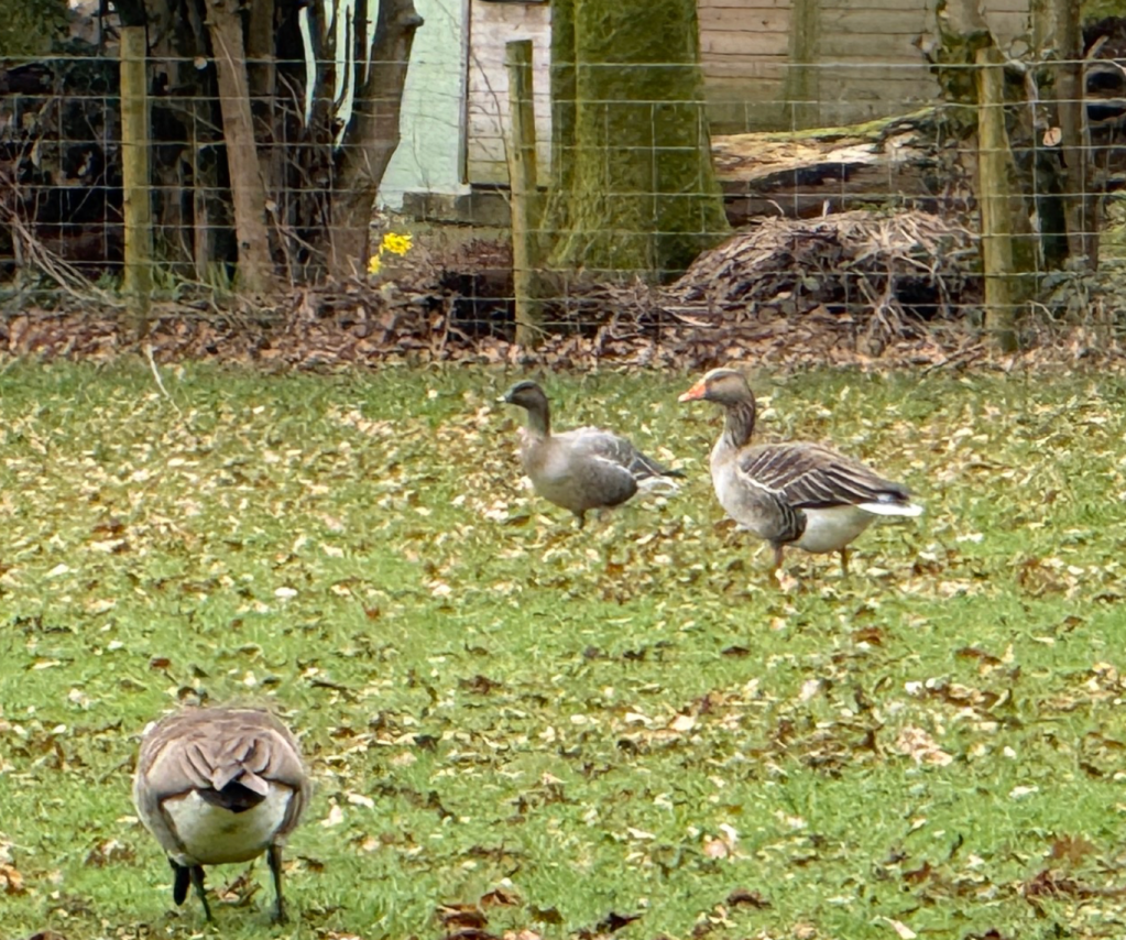 Near the Coniston Inn there was a flock of Greylags and Canada Geese. Checking through them there was a Pinkfoot. When such birds can’t fly it’s fair to assume they’ve been put down by wildfowlers having been shot. When they can fly it’s interesting to speculate on whether they’re wild birds or not.